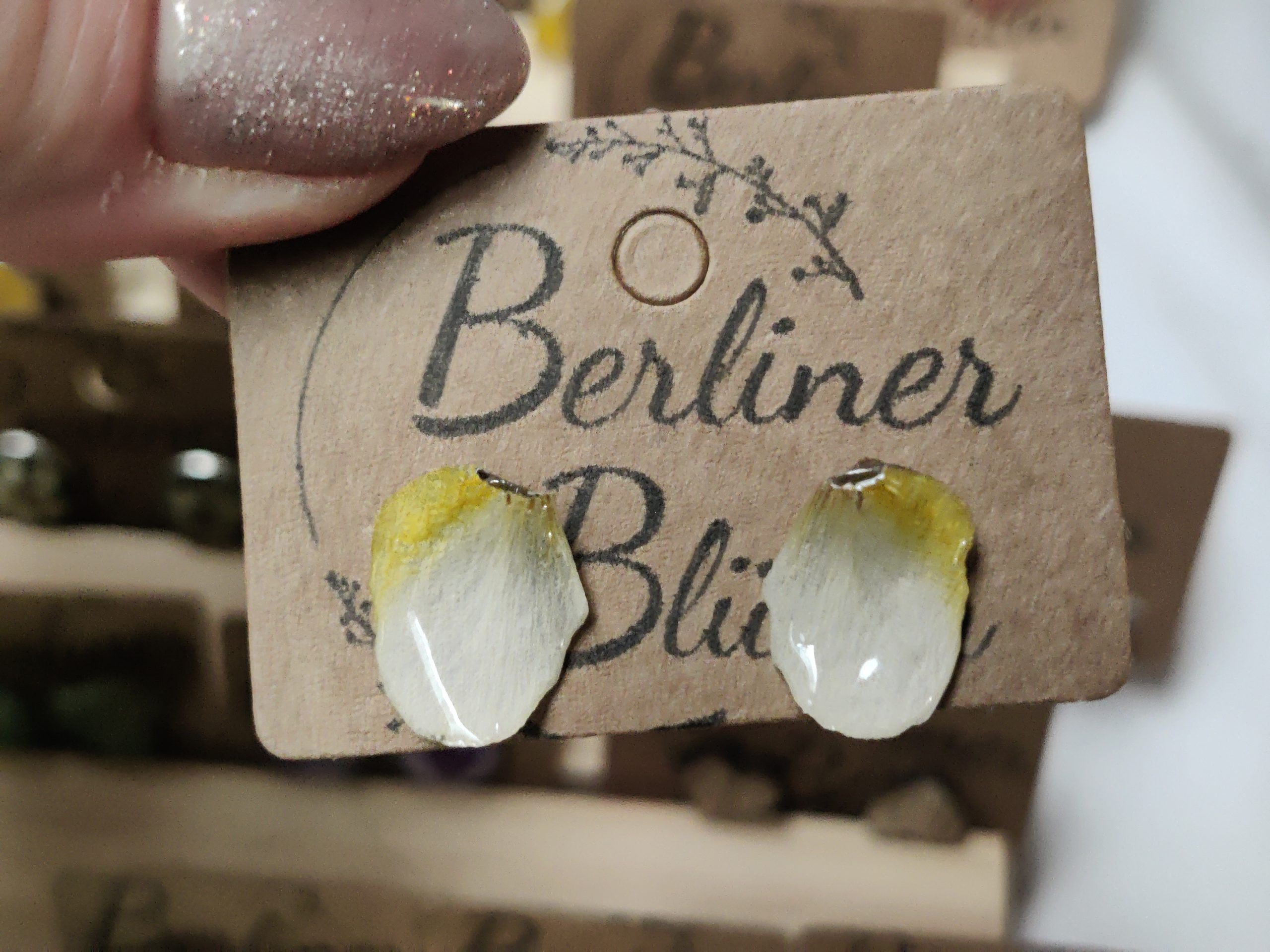 Ich habe in liebevoller Handarbeit Ohrstecker hergestellt. Es wurde zarte Teile der Orchideen mit Edelstahl-Elemente kombiniert.