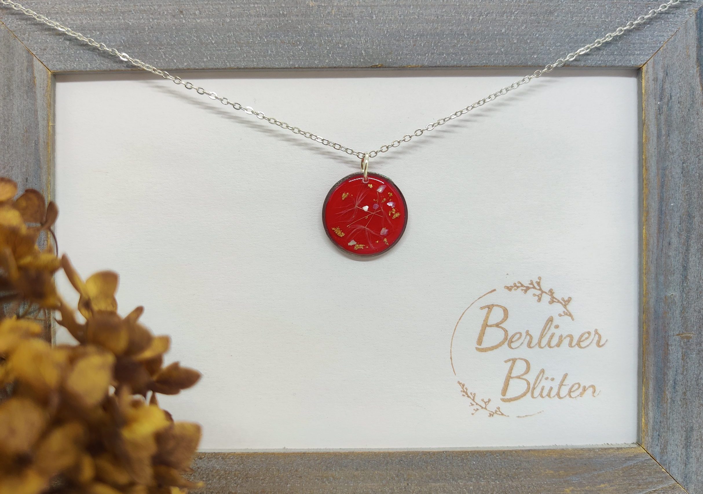 Ich habe in liebevoller Handarbeit eine Kette aus hochwertigem Bio-Epoxidharz / Resin hergestellt. Es wurden eine echte Pusteblumensamen getrocknet und im roten Resin eingegossen.