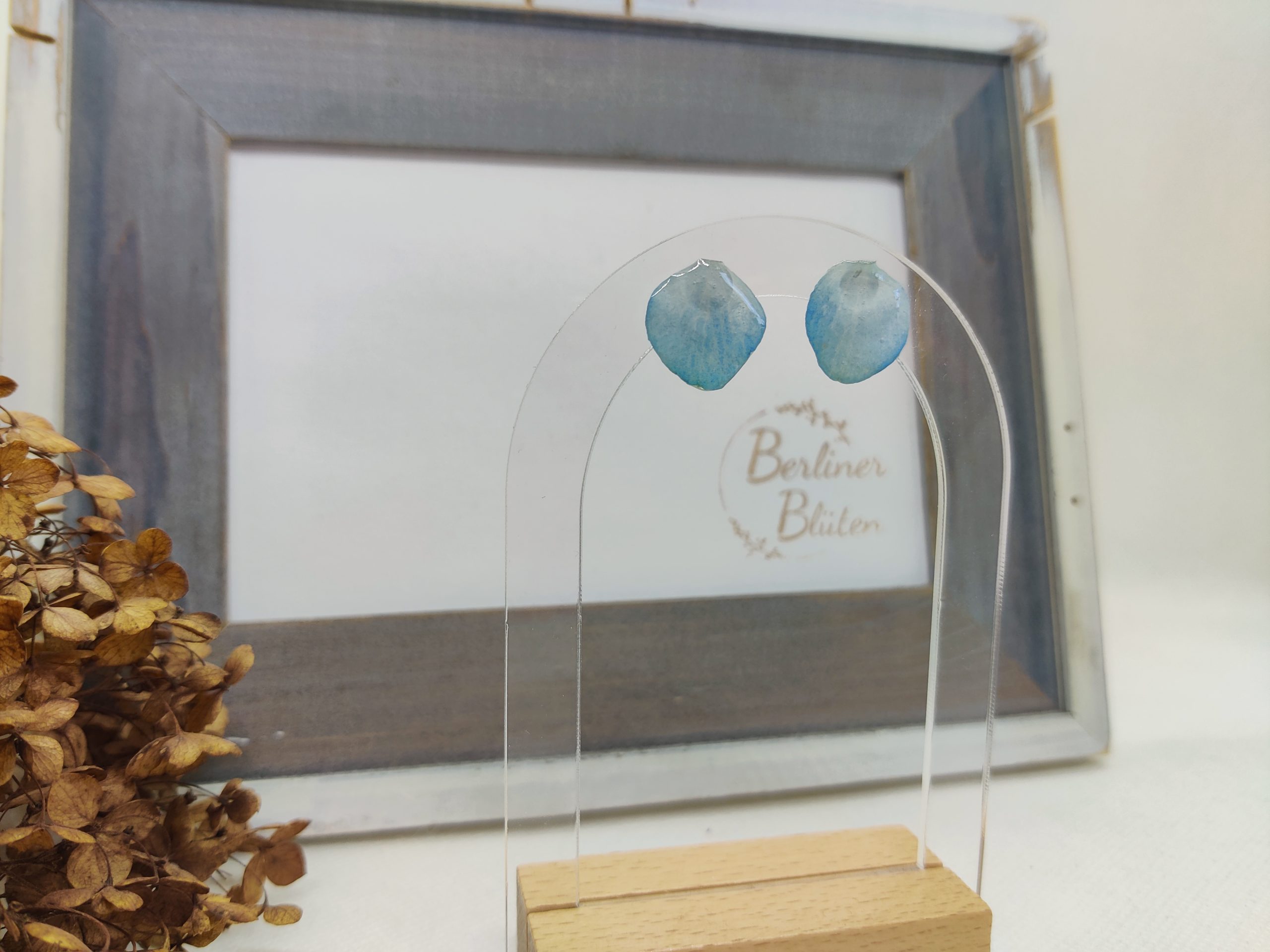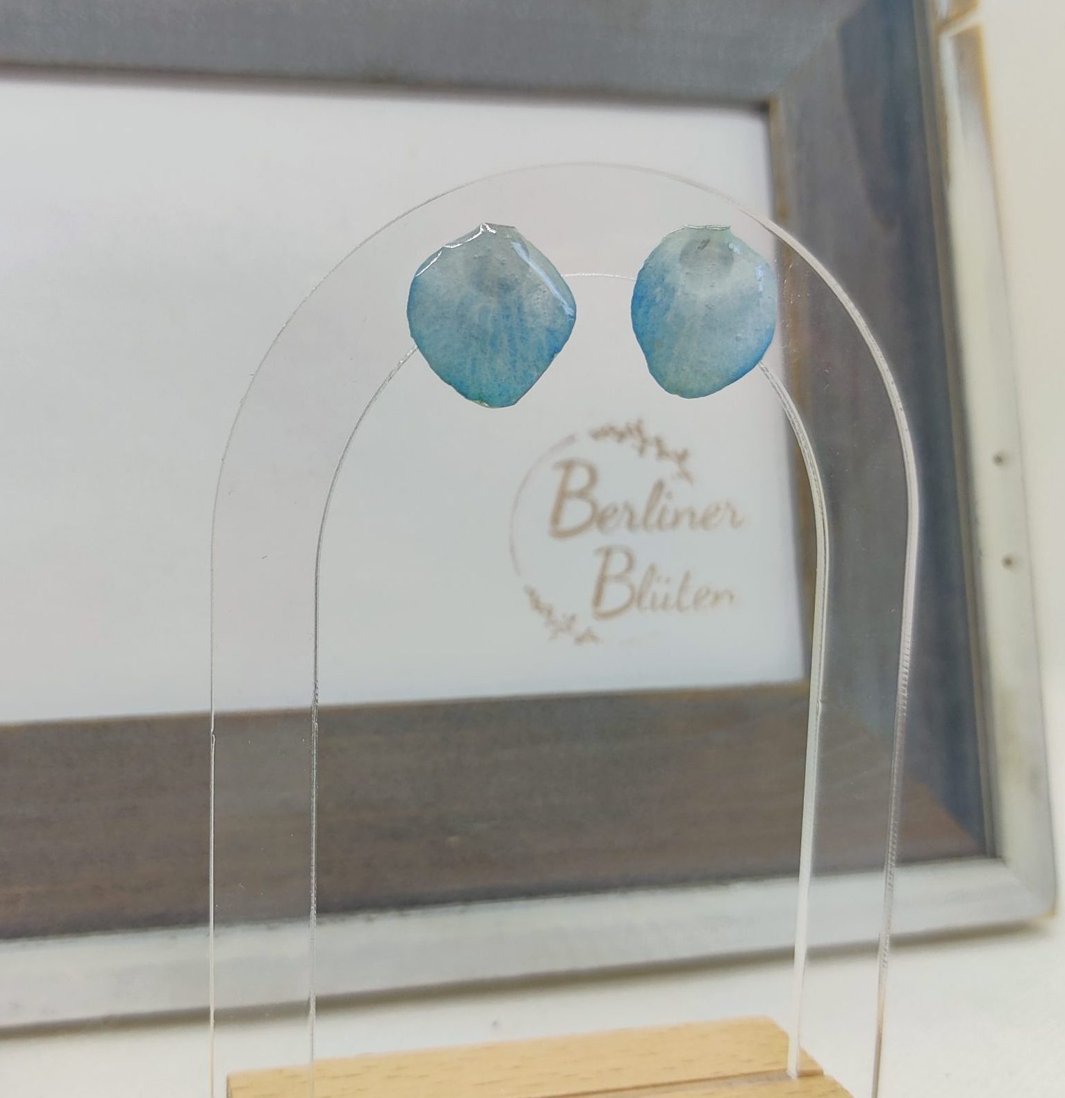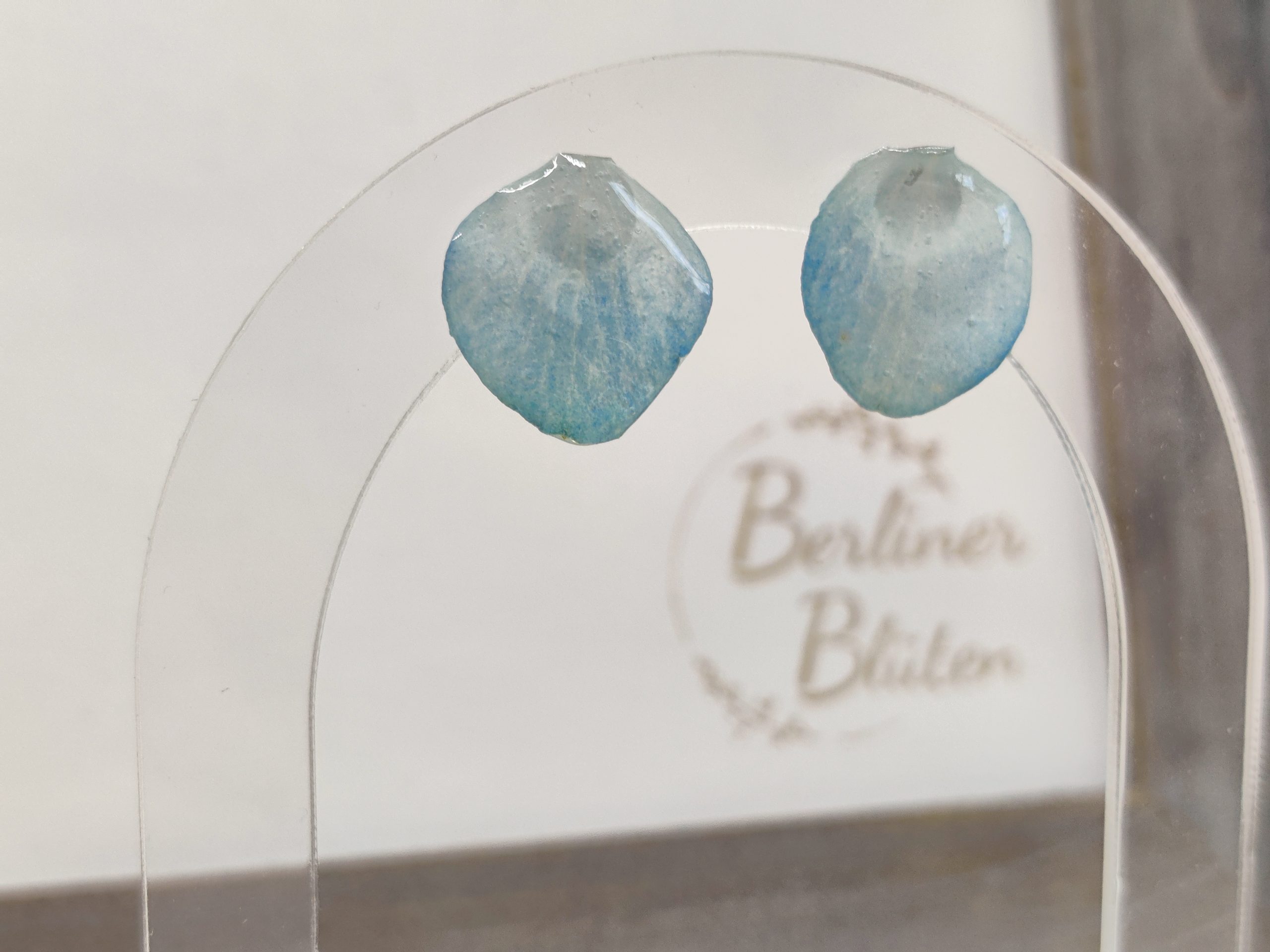 Ich habe in liebevoller Handarbeit Ohrringe hergestellt. Es wurde zarte Hortensienblüten mit Edelstahl-Elemente kombiniert.
