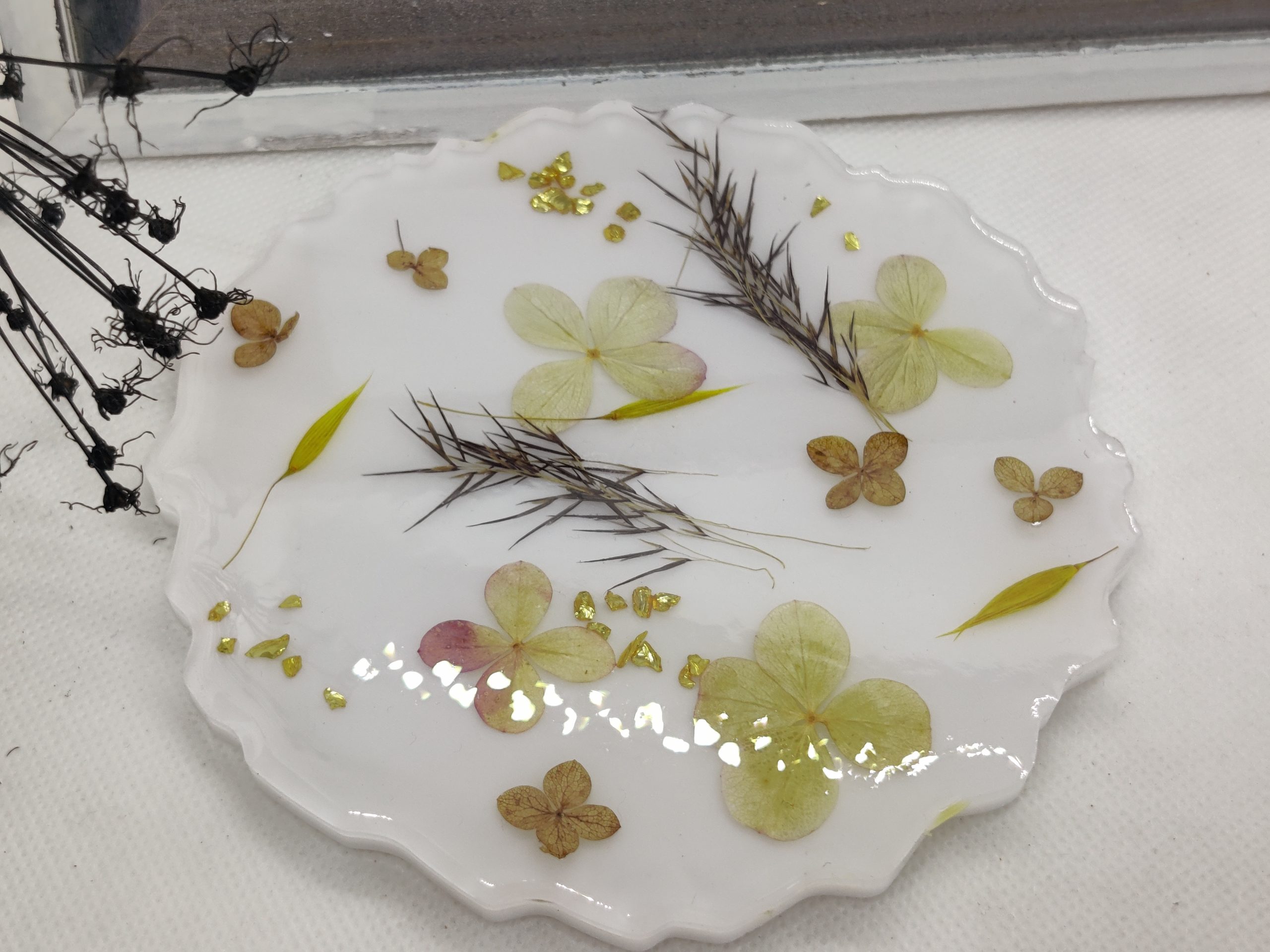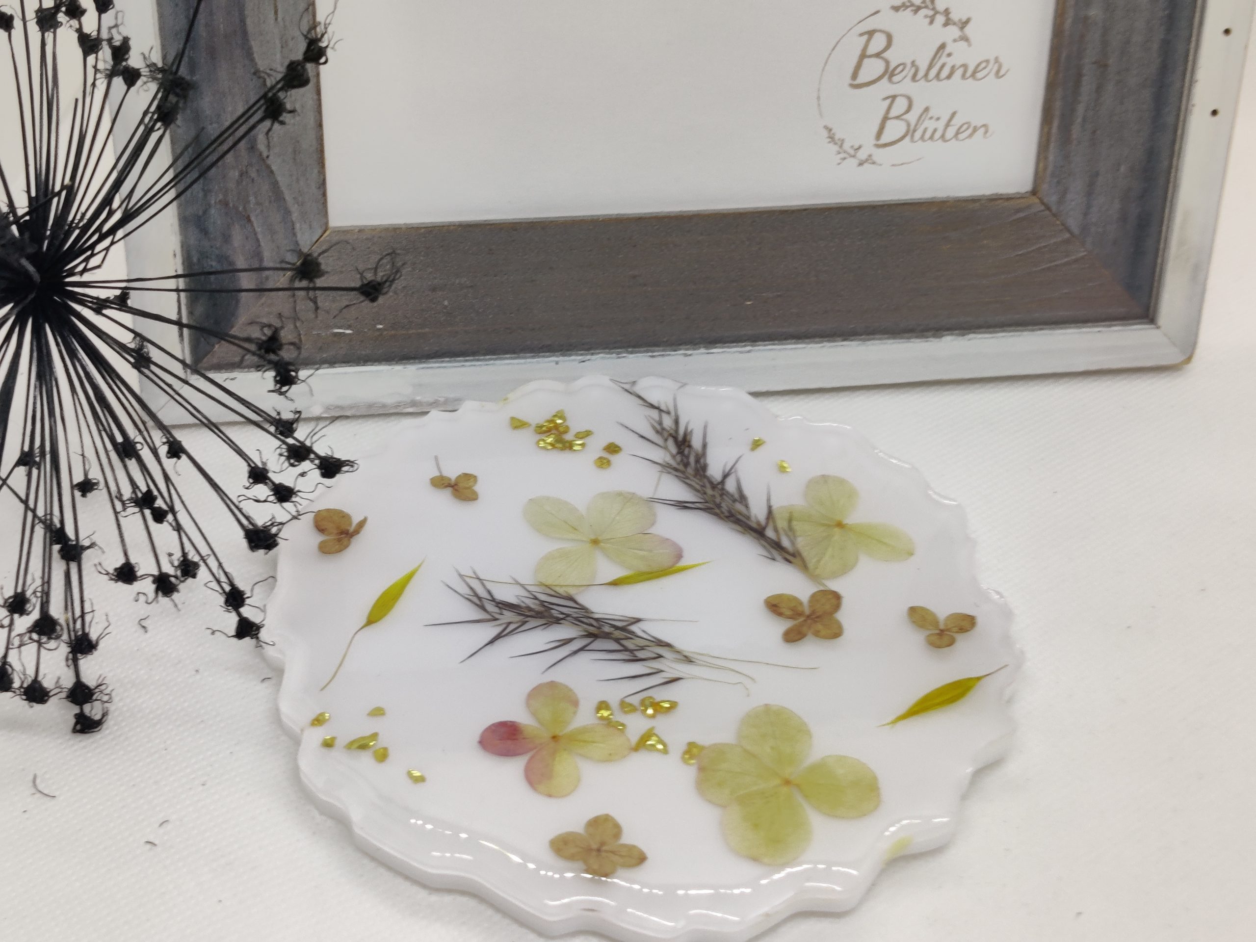 weiße Untersetzer mit Blumen